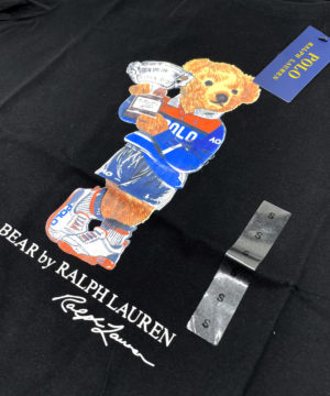 - Polo Bear, “Polo Bear by Ralph Lauren” and “Ralph Lauren” script printed at the center front