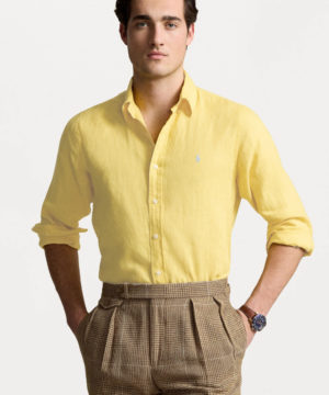 - Button-down point collar. Buttoned placket. Long sleeves with buttoned barrel cuffs. Split pleated back yoke ensures smooth, contoured shoulders.