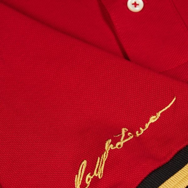 Update your weekend wardrobe with the Lunar Tip Short Sleeve Polo Shirt from polo Ralph Lauren. Crafted with a classic collar with short sleeves and a button fastening placket. A contrasting tip to the collar and sleeves along with the iconic Polo Player logo gives a statement look, a must have piece for any collection. This stripe style version is made from highly breathable cotton mesh, which offers a textured look and a soft feel.