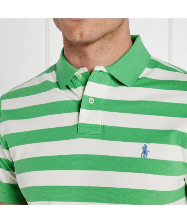 Polo Ralph Lauren Custom Slim Fit Striped Mesh Polo Shirt – Green/White