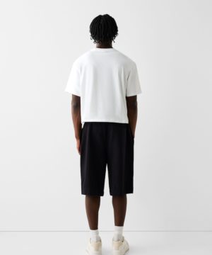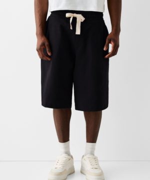 Pull & Bear RUSTIC TEXTURED BERMUDA SHORTS – 05ALL BLACK