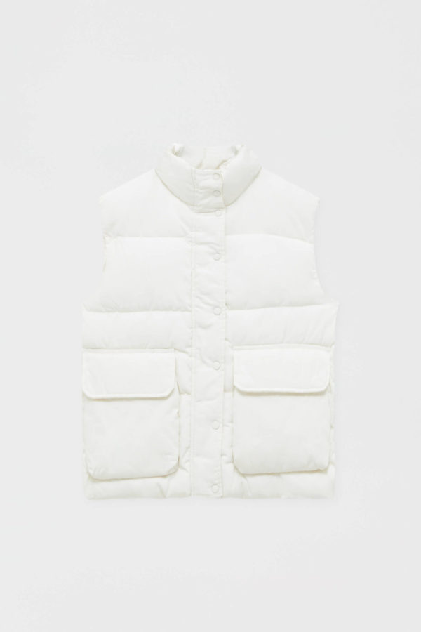 Pull & Bear Unisex Quilted Gilet With Patch Pockets – Pearl White