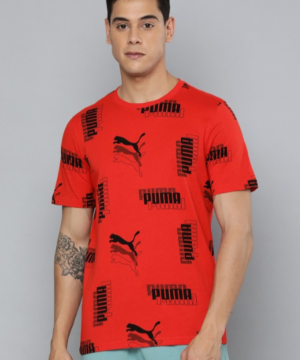 PUMA 3 Cat Logo Cotton T-Shirt Red