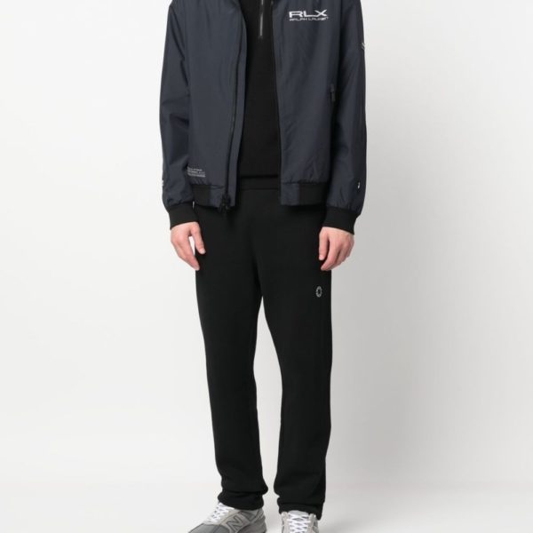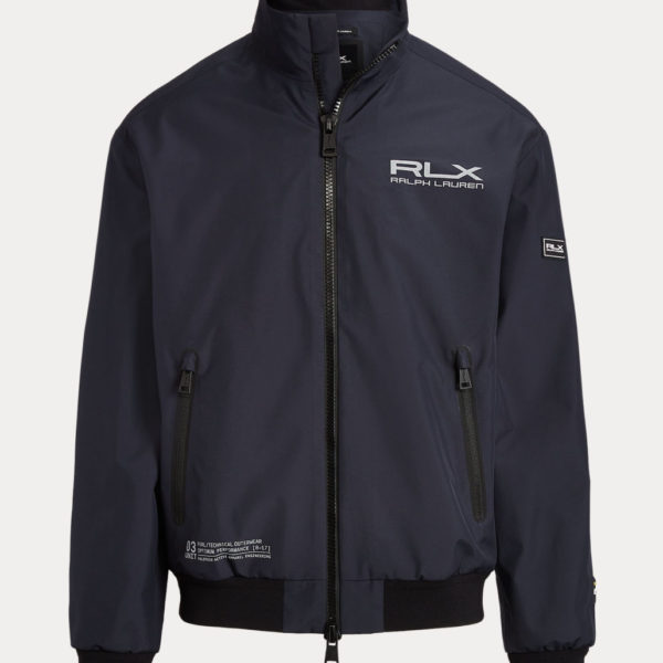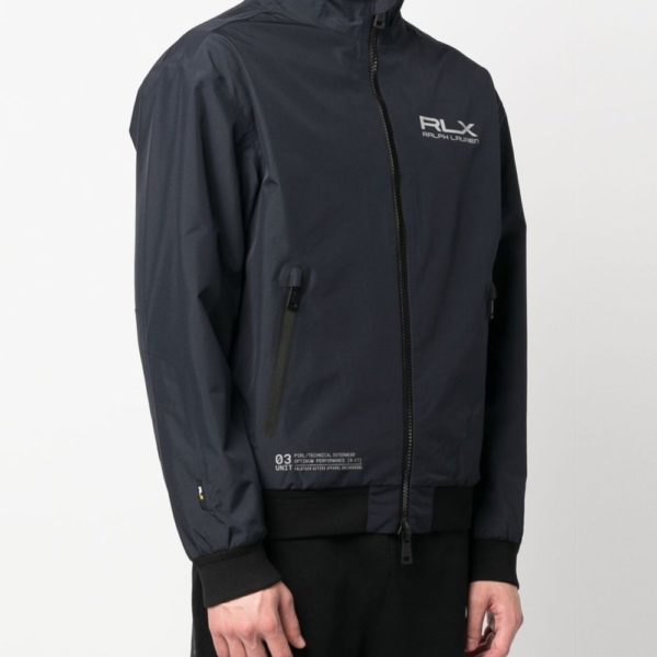 - Long sleeves with banded cuffs. Rubber “RLX” tab on each sleeve. Rubber “RLX Ralph Lauren” patch on the left sleeve. Two front waist zip pockets. Interior left chest pocket.