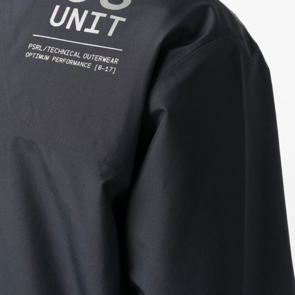 - Reflective “RLX Ralph Lauren” on the left chest. Reflective “03 Unit PSRL Technical Outerwear” on the right hem and the back right shoulder. Rubber “RLX-067 Outerwear” patch on the back left hem.
