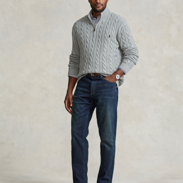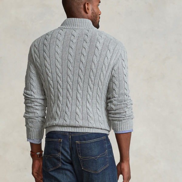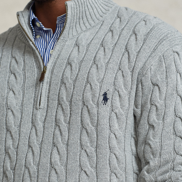 Ralph Laurens Cable-Knit Cotton Quarter-Zip Sweater – Grey