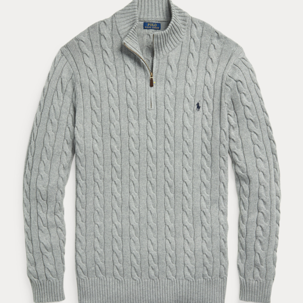 Ralph Laurens Cable-Knit Cotton Quarter-Zip Sweater – Grey