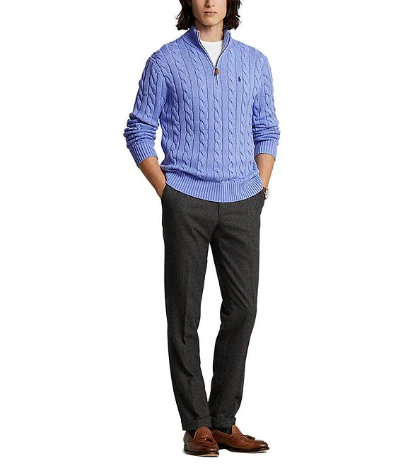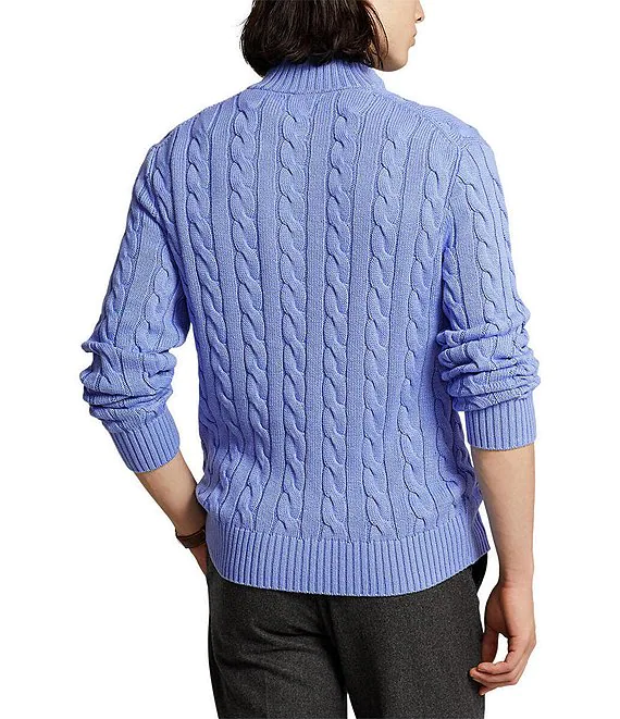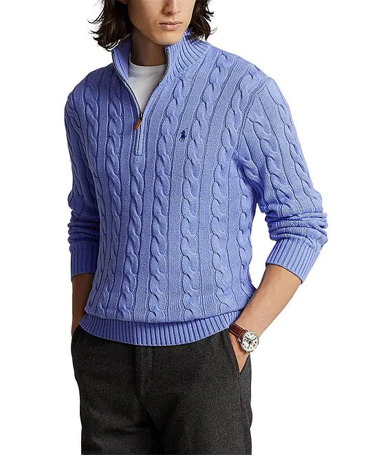 Ralph Laurens Cable-Knit Cotton Quarter-Zip Sweater – Sky Blue