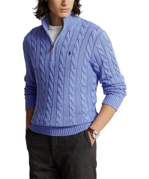 Be the first to review “Ralph Laurens Cable-Knit Cotton Quarter-Zip Sweater – Sky Blue” Cancel reply
