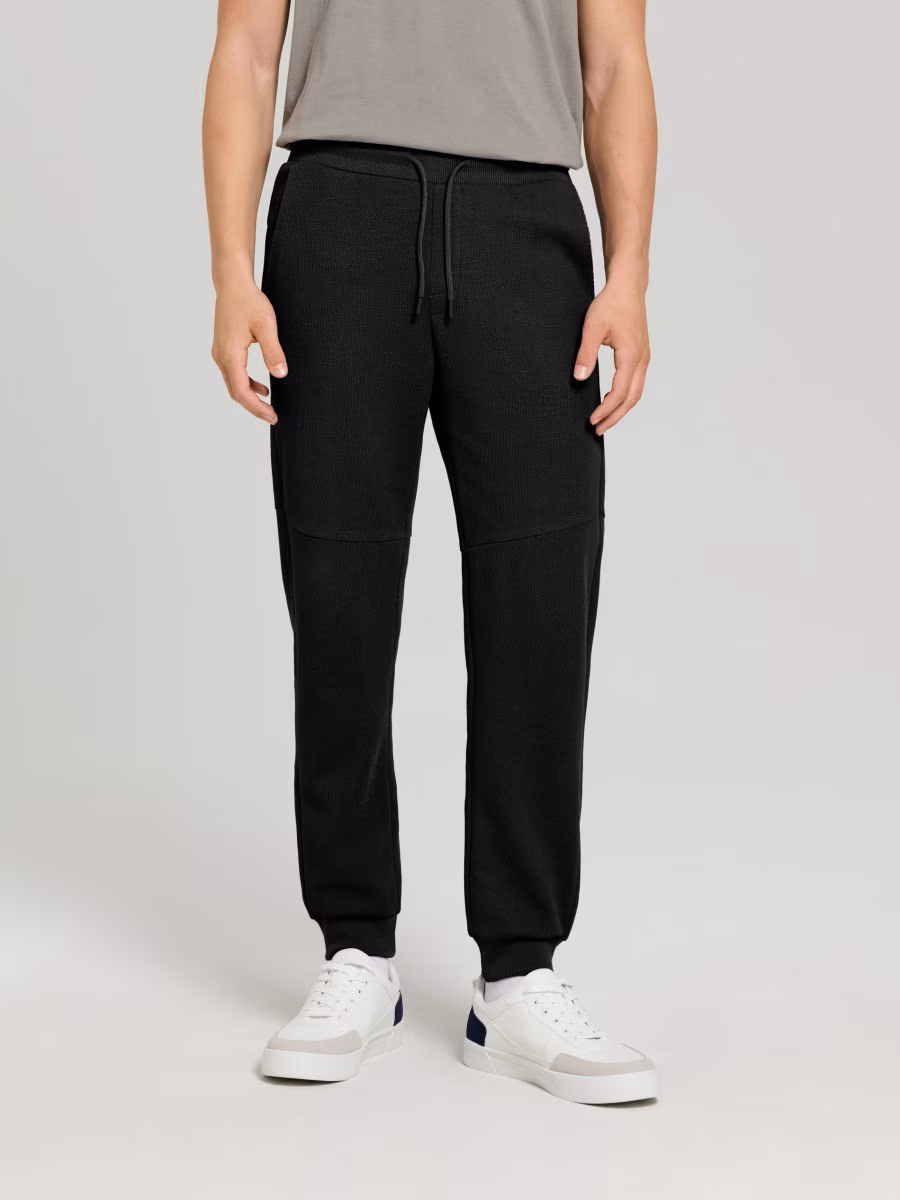 - Rib-knit mockneck. Quarter-zip placket with a suede zipper pull.