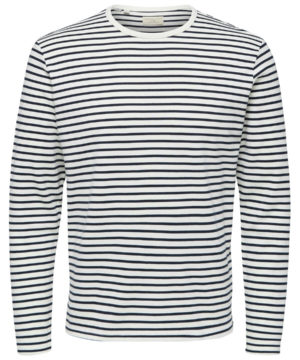 SELECTED HOMME STRIPED LONG-SLEEVED COTTON SWEAT – White/Navy