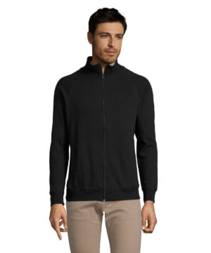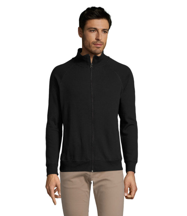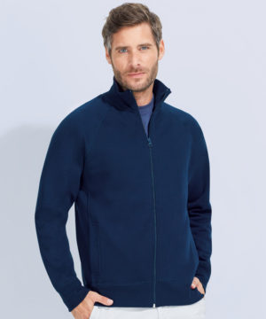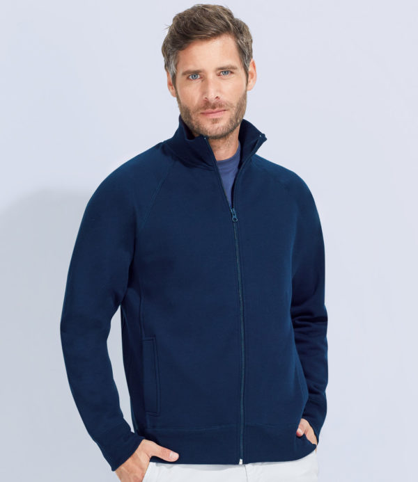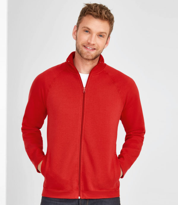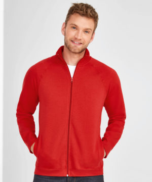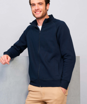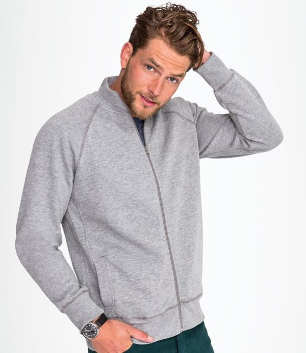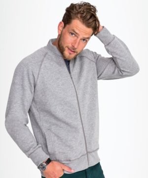 Brushed fleece backing. Raglan style. Taped back neck. Full length zip. Two front pockets. 2×2 rib collar, cuffs and hem. Flatlock stitching detail. Fabric Weight – 280 gsm