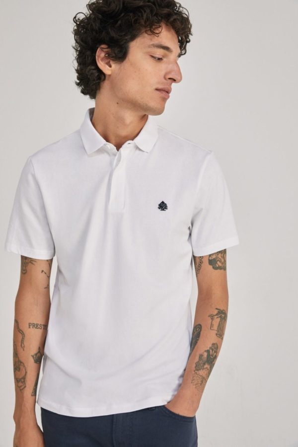 Springfield Slim Polo Shirt With Hidden Placket – White