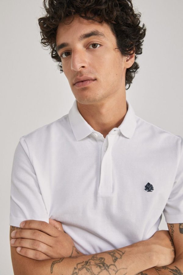 - Slim fit spandex polo shirt in cotton spandex with embroidered tree on the chest.