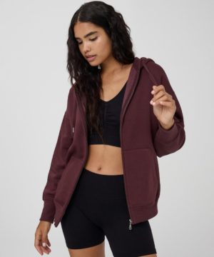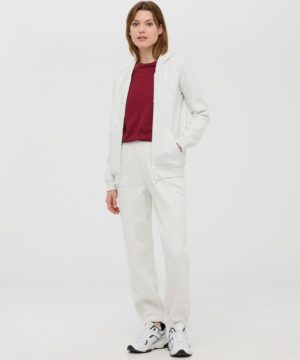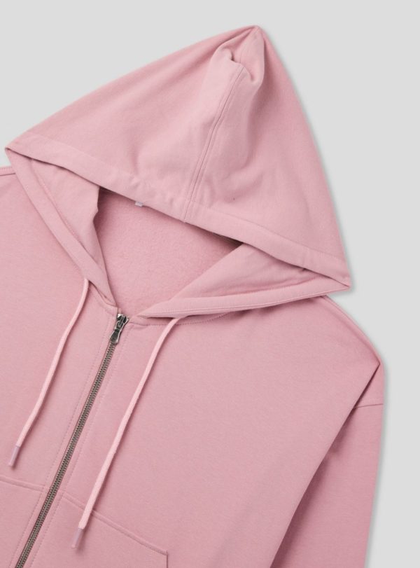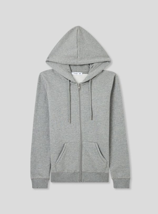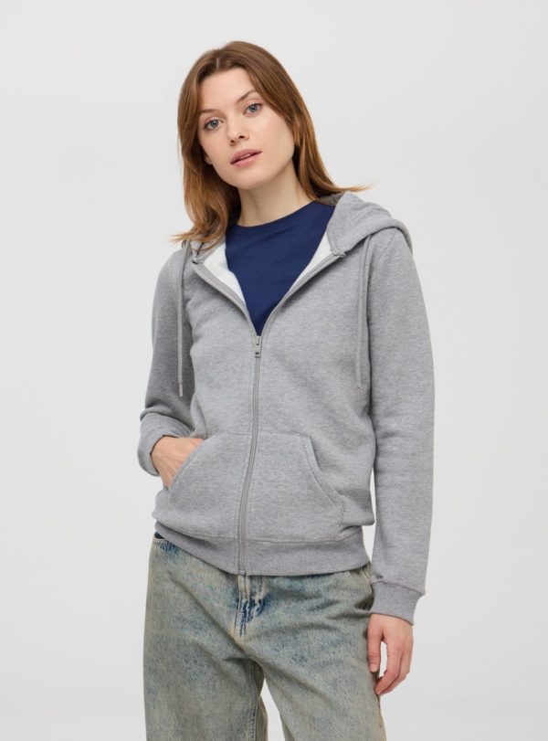 Women’s hoodie with drawstring, zip closure and front kangaroo pockets, made of heavy solid fabric. An essential basic piece to have in your wardrobe, perfect for casual looks.