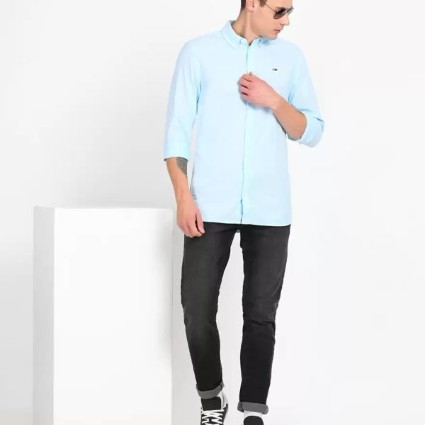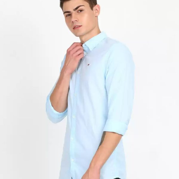 TOMMY HILFIGER Men Slim Fit Solid Button Down Shirt – Antarctic Blue