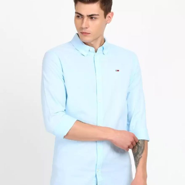 TOMMY HILFIGER Men Slim Fit Solid Button Down Shirt – Antarctic Blue