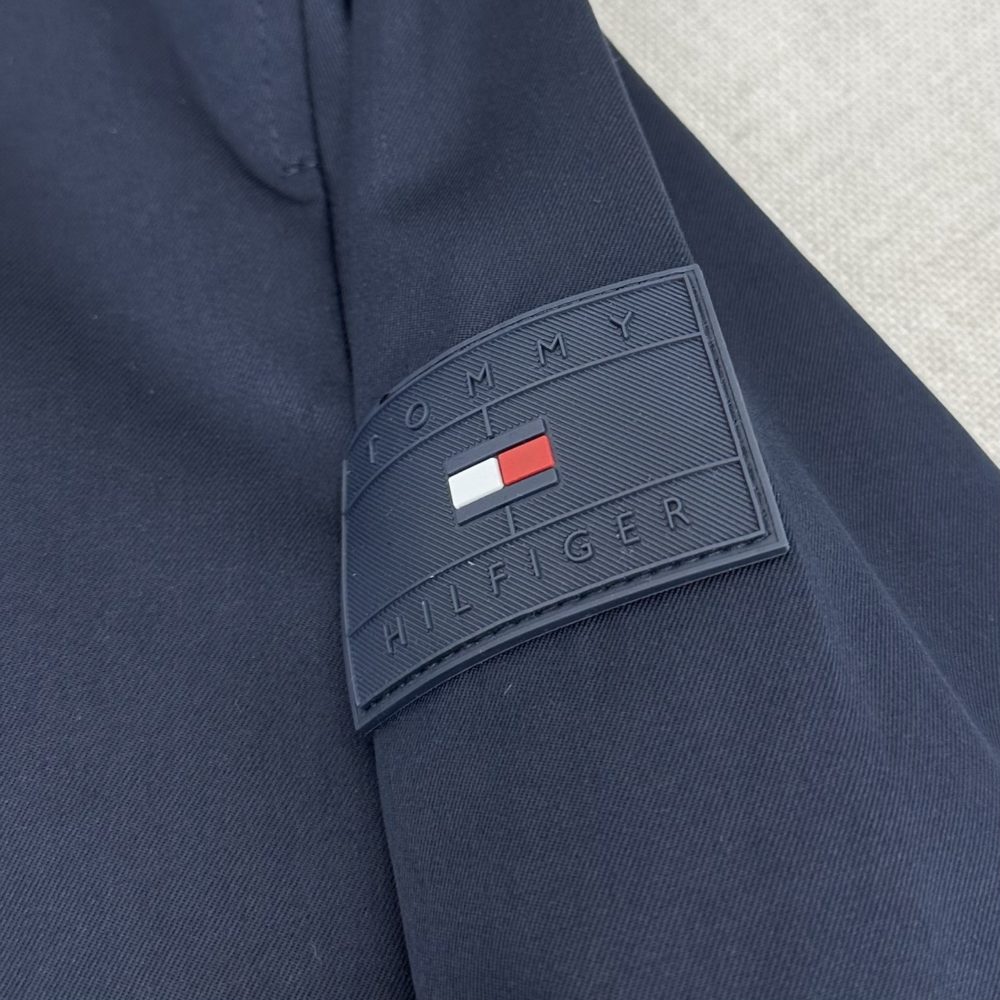 The jacket features the Tommy Hilfiger signature flag on the left chest and rubber patch logo on sleeve; Also features a front sealed zip closure, two side pockets with button closures