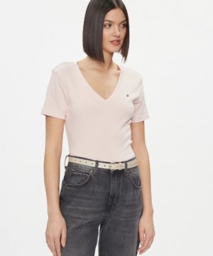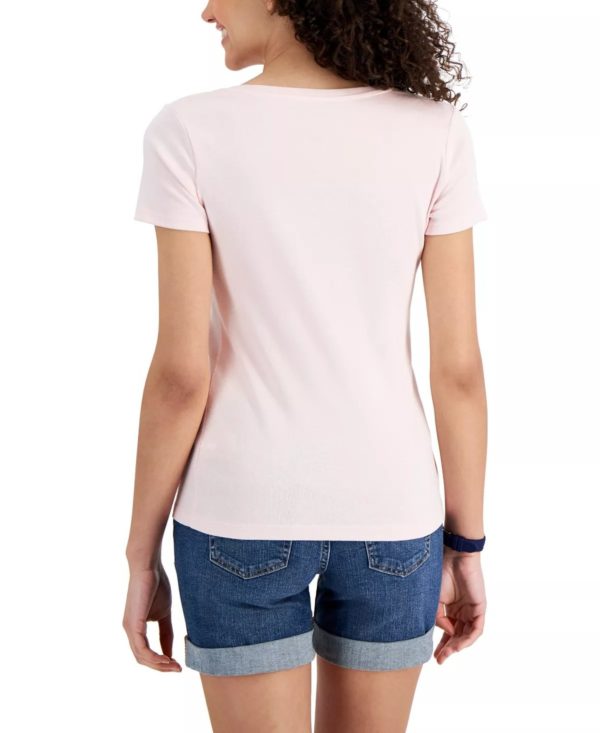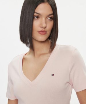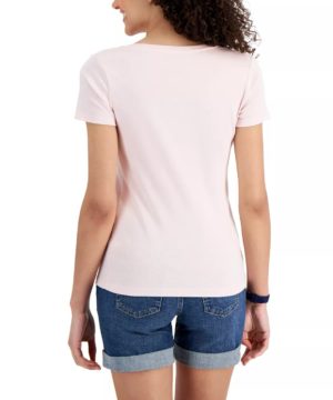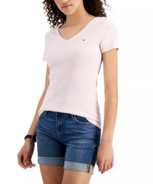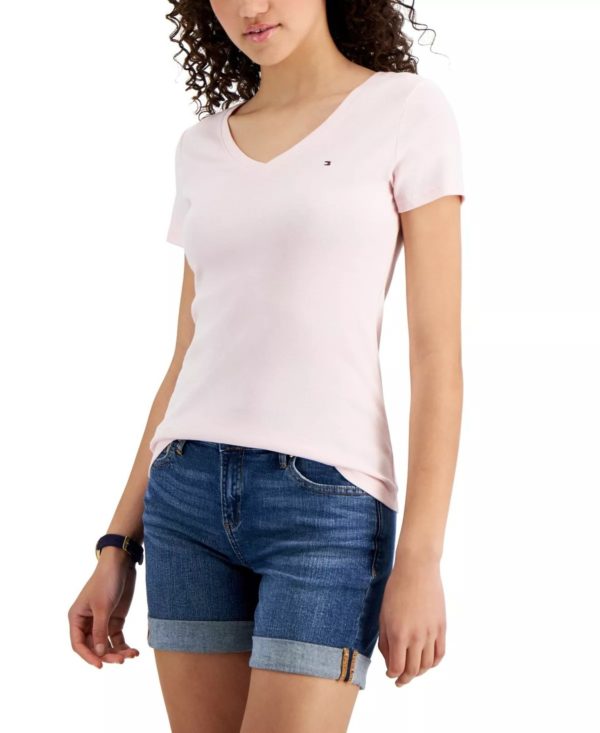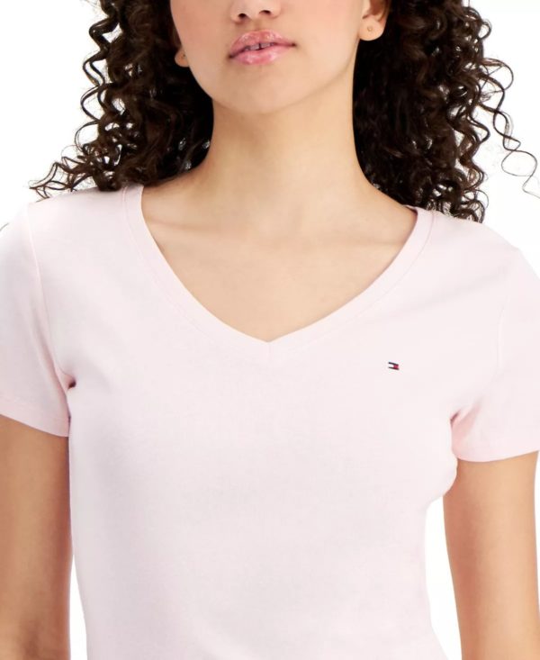 Tommy Hilfiger Women Short Sleeve V-Neck Solid Cotton Tee – Powder Pink