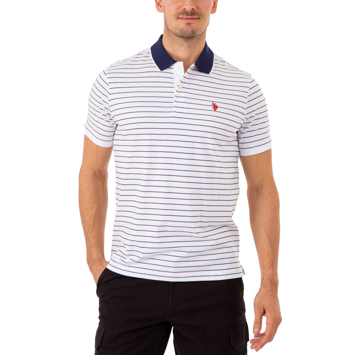 Get a pulled-together casual look with the U.S. Polo Assn. Men’s Stripe Jersey Polo. This super soft, deep-dyed short sleeve performance polo shirt is universally wearable and so comfortable you’ll happily wear it all day. Pair it with your favorite shorts or long bottom for a casual relaxed look.