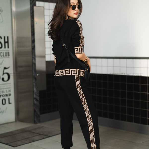 Versace Women Viscose Stretch Knitted Replica TrackSuit – Black