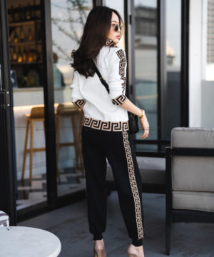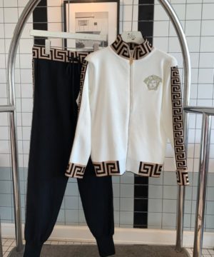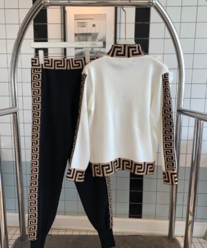 Versace Women Viscose Stretch Knitted Replica TrackSuit – Off White/Black