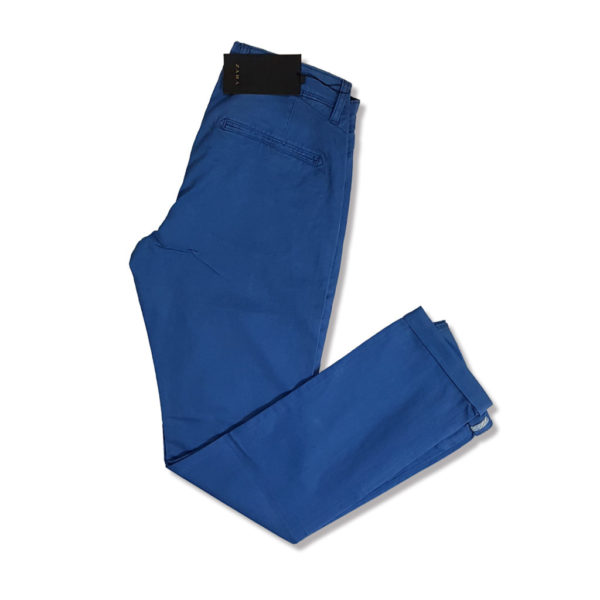 Chino pants in 98% Cotton. Front pockets and back welt pockets. Front zip and belt closure.