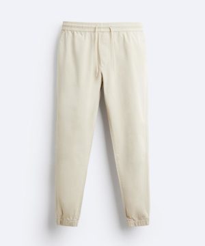 ZARA MAN KNITTED JOGGER COTTON TROUSER BEIGE