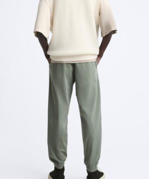 ZARA MAN KNITTED JOGGER COTTON TROUSER OLIVE