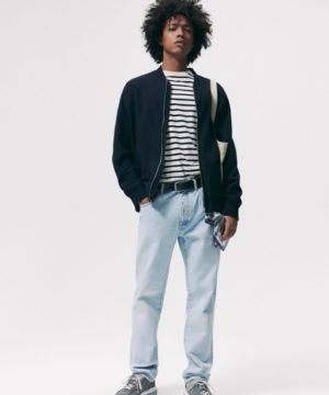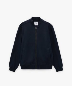 ZARA TEXTURED BOMBER JACKET – NAVY