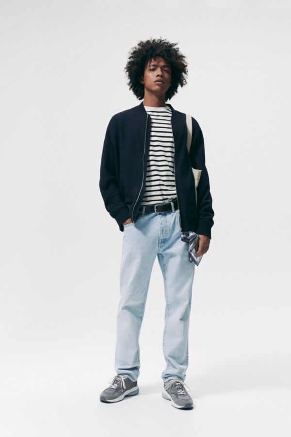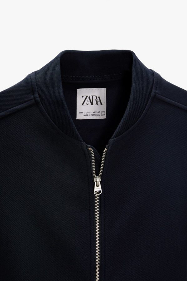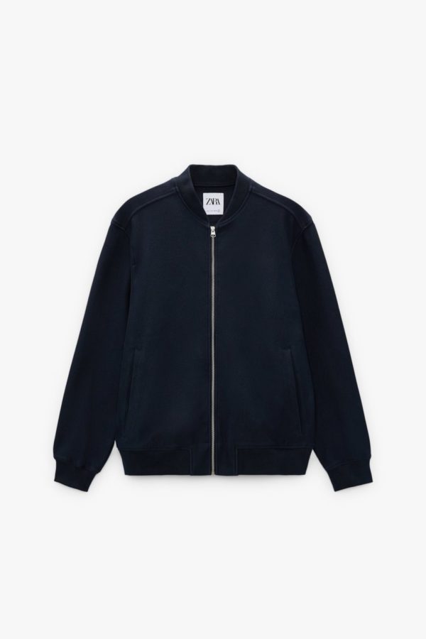 ZARA TEXTURED BOMBER JACKET – NAVY