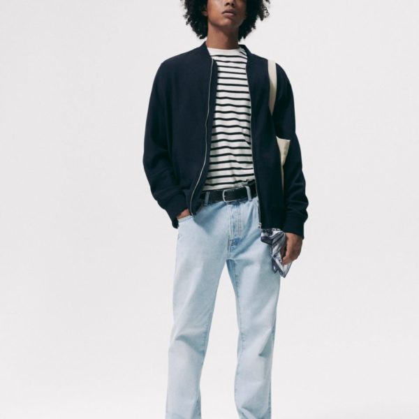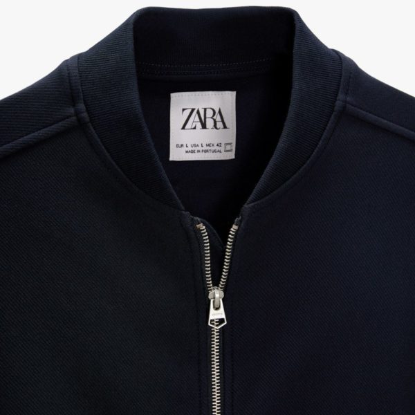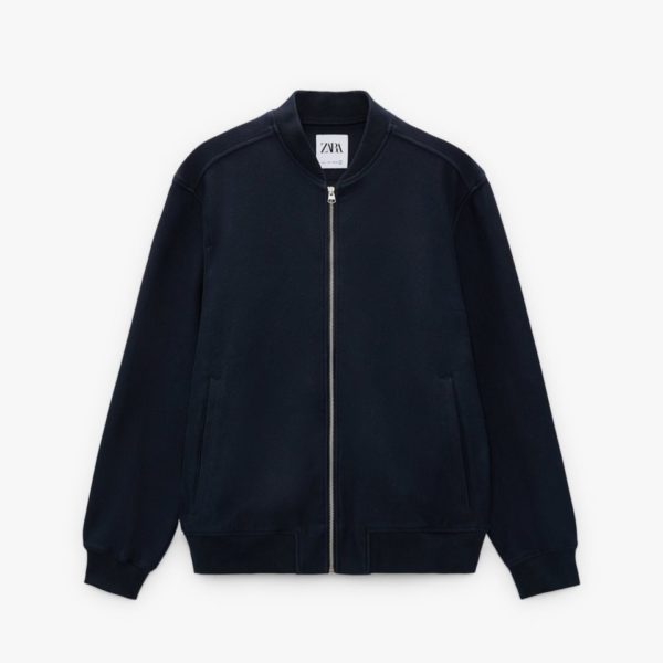 ZARA TEXTURED BOMBER JACKET – NAVY