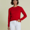 Woman sweater. Long-sleeved model and crew-neck in combined viscose and nylon fabric. Ribs applied on the bottom and hems with glittery details