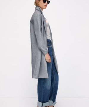 - Open coat featuring a lapel collar, long sleeves and in-seam side pockets.